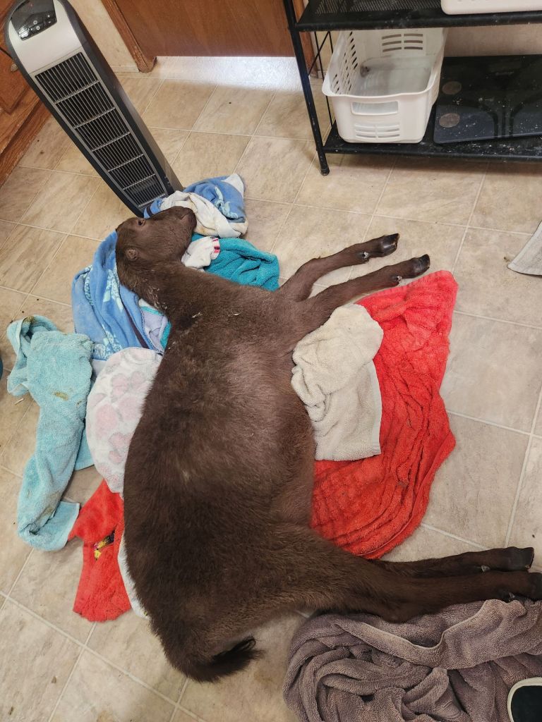 Her breeder delivered her when she was around six weeks old, and still on a bottle. When she arrived, she had diarrhea. The breeder chalked it up to the very nice alfalfa she’d recently started eating, combined with the stress of transportation. Likely an accurate reason. I was worried, though, and took her to my vet. She felt good, no fever, eating well, hydrated. Vet wasn’t worried.