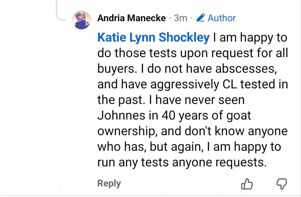 I reached back out to the former owners, who denied all knowledge of the infections. I asked them if they would be willing to keep my money, and take the goats back. I would ship them back at my expense. They said no.